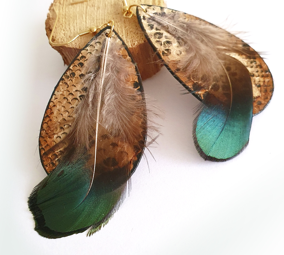 A pu egzotikus mintás bőrön pávatoll díszeleg.