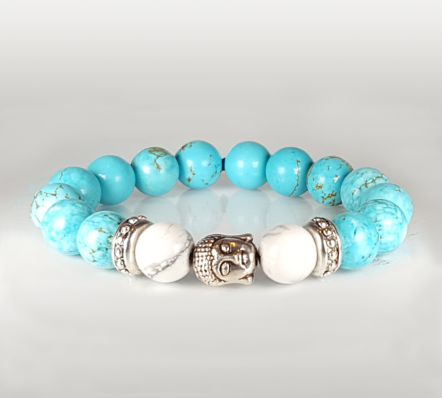 A karkötő minőségi ásványból készült.Buddha fej és tibeti fém köztes díszíti.