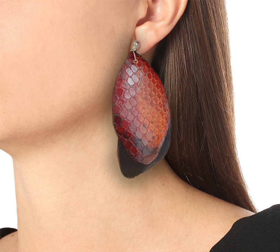 A pythonmintás marhabőr fülbevaló dekoratív kis különc darab!