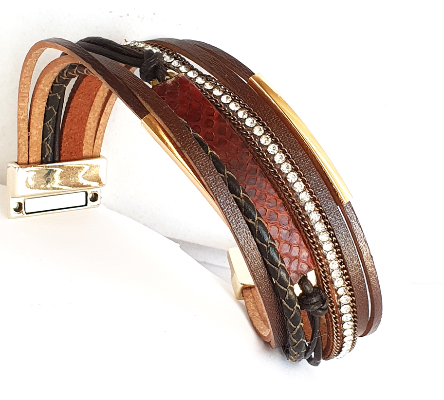 A bőr hengerelt zsinóron fémköztes és bőrgyöngy található. A medál ezüst színű sast ábrázol.,cirkonia kirakással.