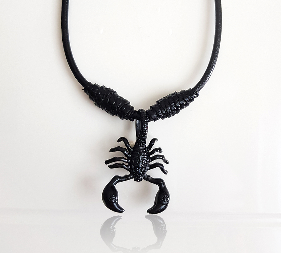 Fekete skorpió férfi bőr nyaklánc