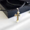 Kisméretű orvosi acél medál fekete csavart bőrszálon.