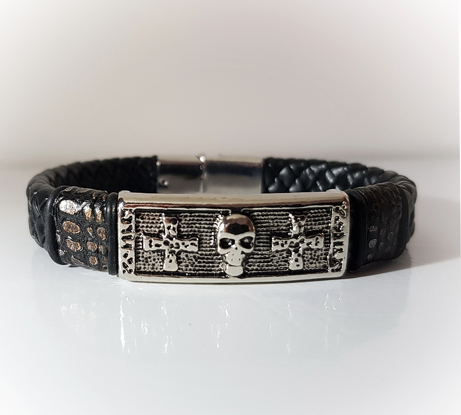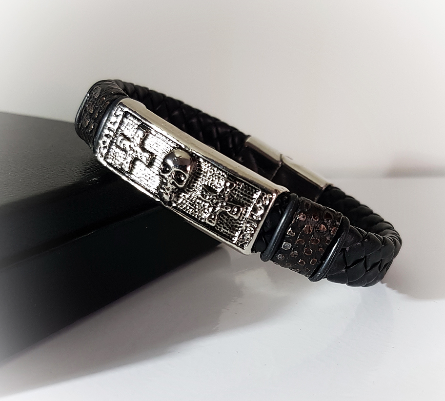 A halálfej és kereszt motivum 925-ös sterling fémötvözetből készült, mely antiallergén.