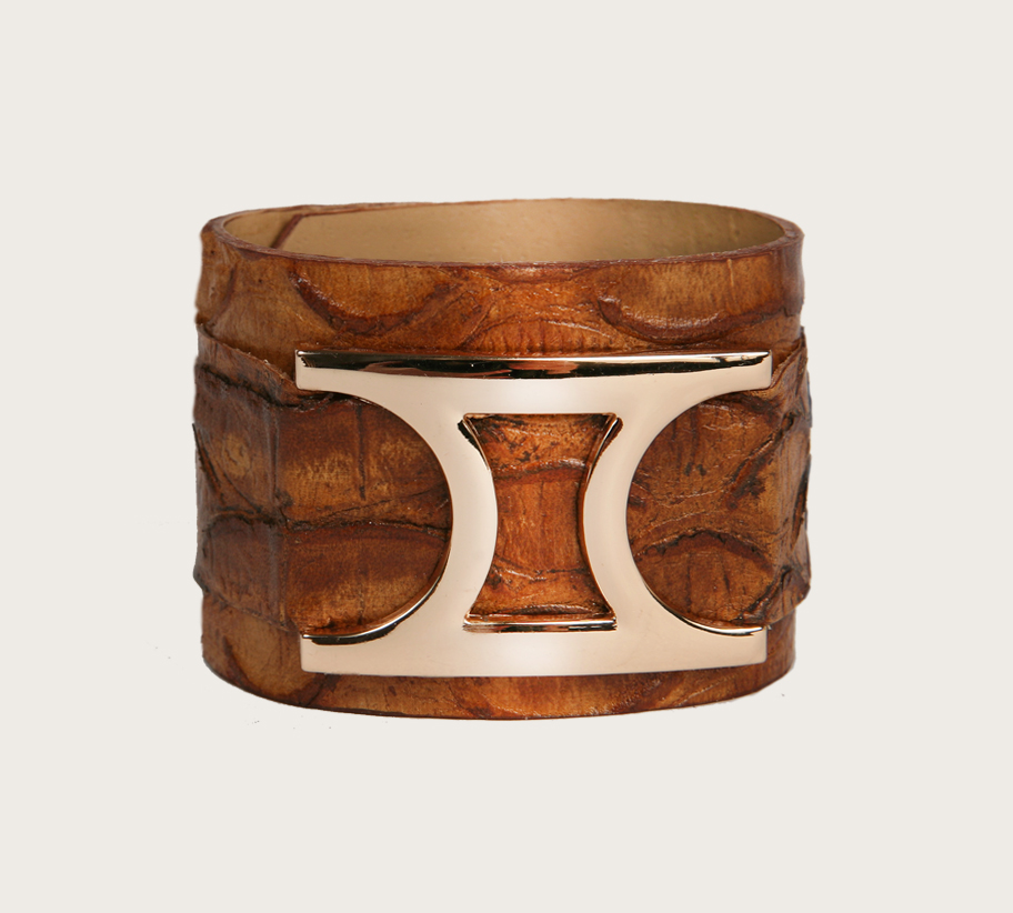 A karkötő marhabőr alapon krokodilmintával nyomott.