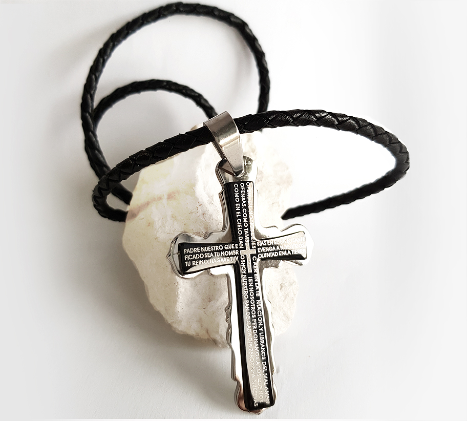 A kereszt elejére gravírozott betűk egyedi külsőt kölcsönöznek ennek az ékszernek.