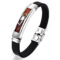 A nemesacél karkötő 20.5 cm hosszú és a szilikon pánt szélessége 10 mm. Biztonságosan záródó nemesacél csatja egy kis horoggal kapcsolódik melyet egy retesz szerű lap fed le /rövidítési lehetőség saját méretre//