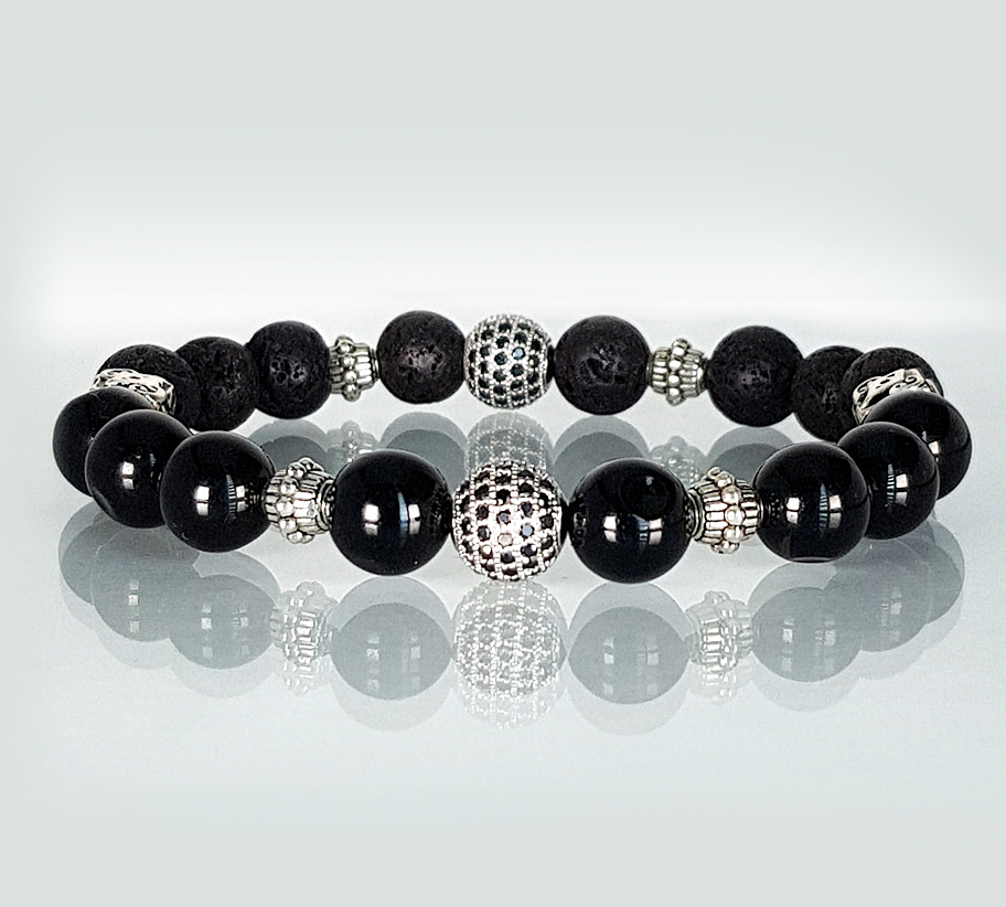 Ónix-lávakő cirkon labdás ásvány karkötő