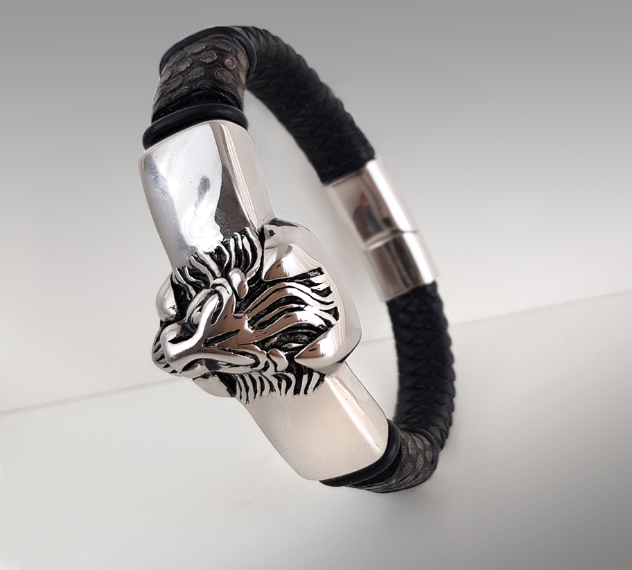 Egyedi és különleges, ez az oroszlános bőr karkötő, a motívum szépen kidolgozott,megmunkált darab.