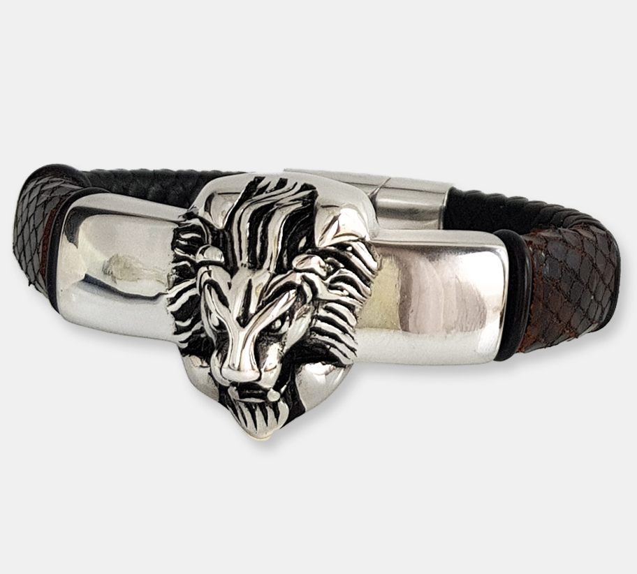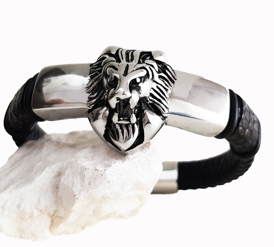 A karkötő elején nemesacél oroszlánfej motívum van, mely 4 cm.
