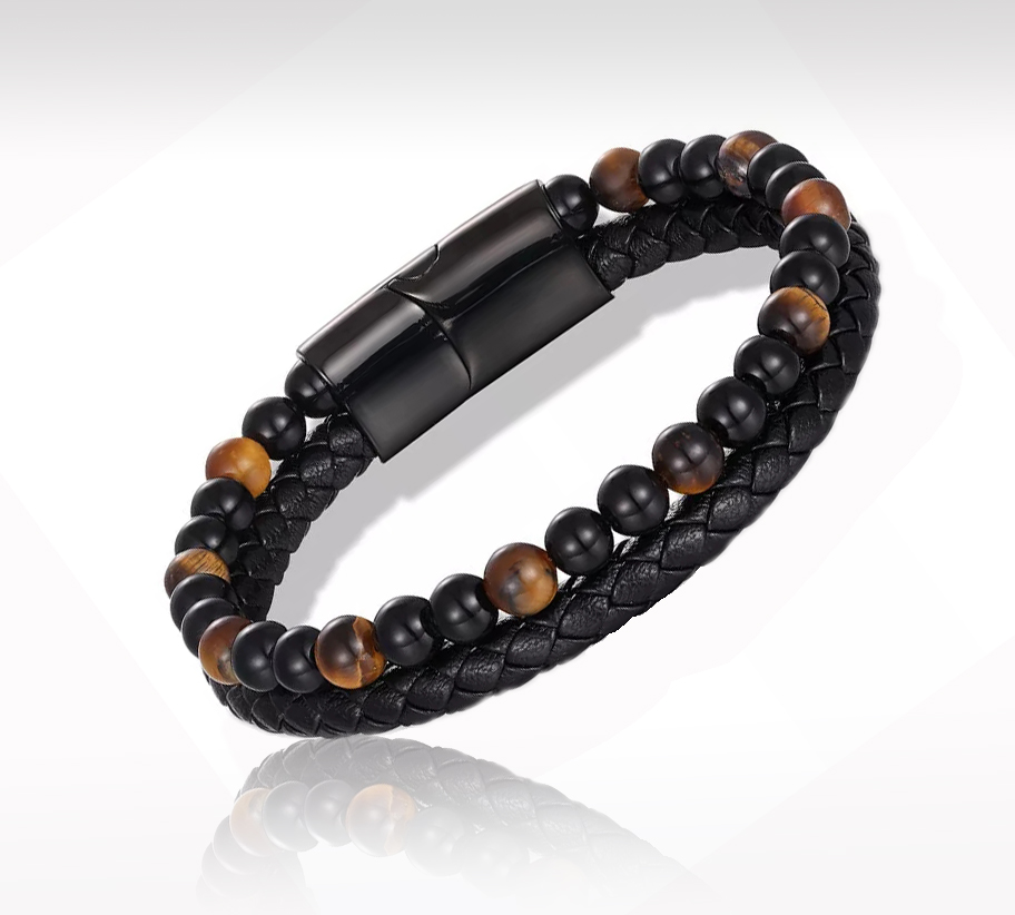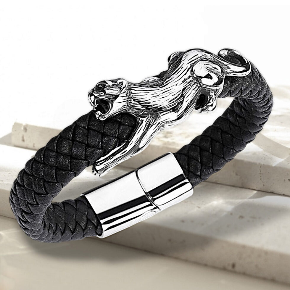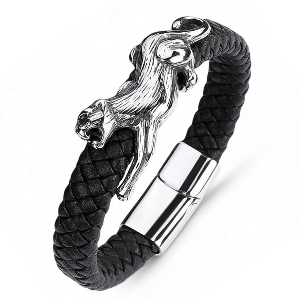Egyedi és különleges, ez a párduc figurás bőr fekete fonott karkötő.