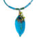 A nyaklánc alapja egy elegáns, 4 mm vastag, türkizkék gyöngyházfényü bőrzsinór.