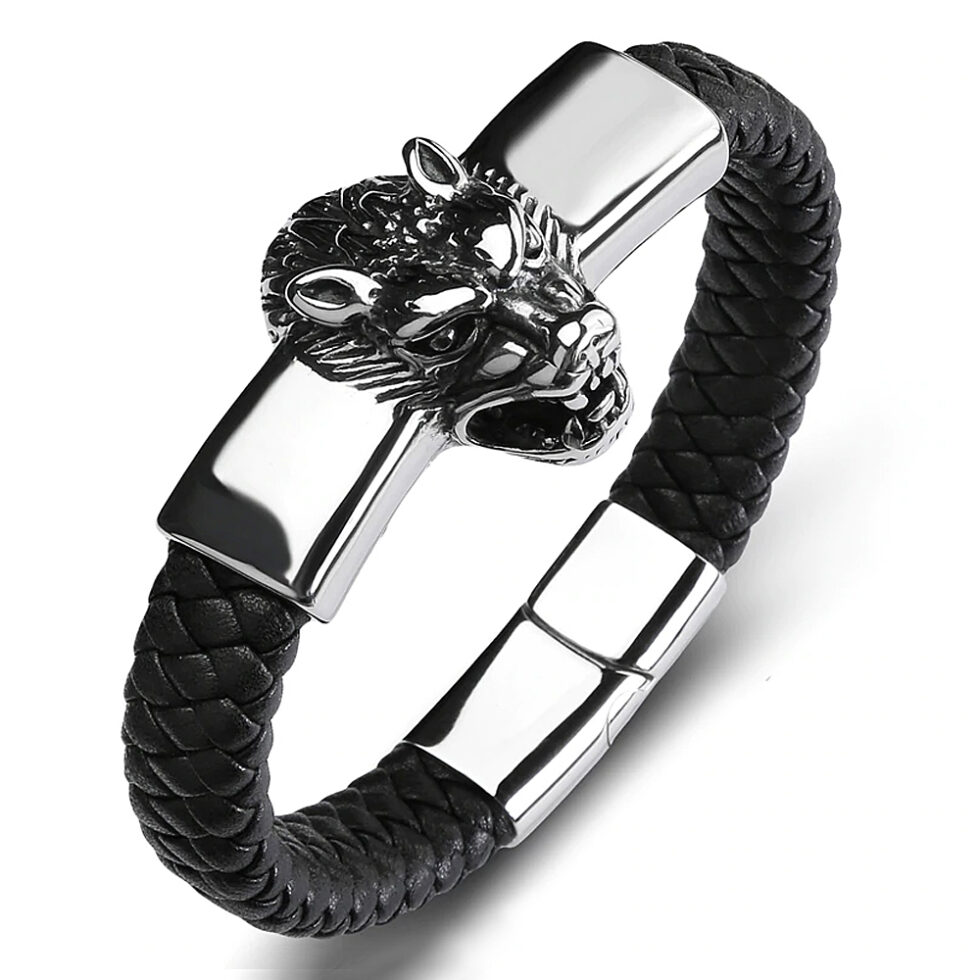 A karkötő elején nemesacél farkas fej motívum van, mely 5 cm. A 316L orvosi acél nem szineződik, antiallergén.